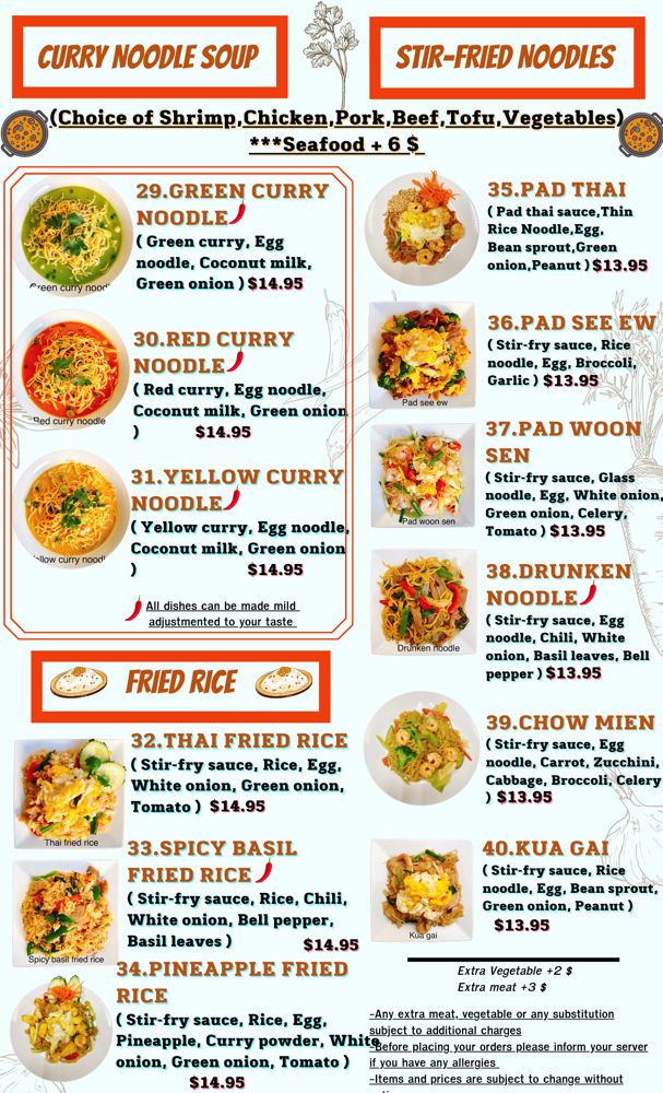 - Traditional Thai favorites bursting with flavors