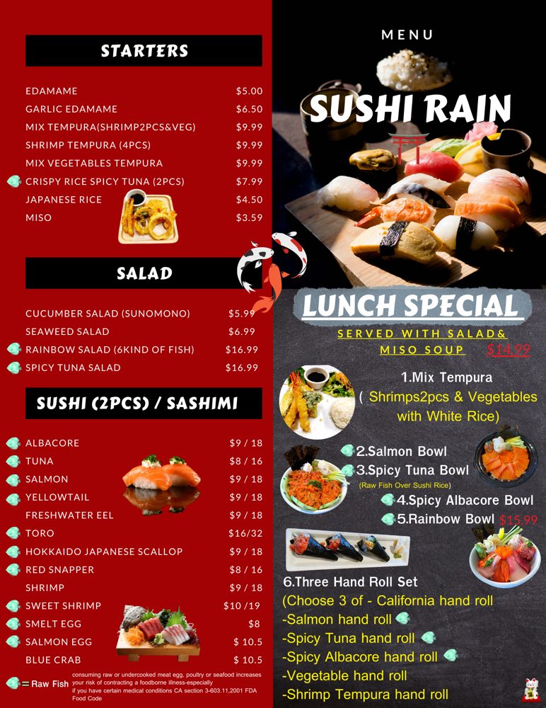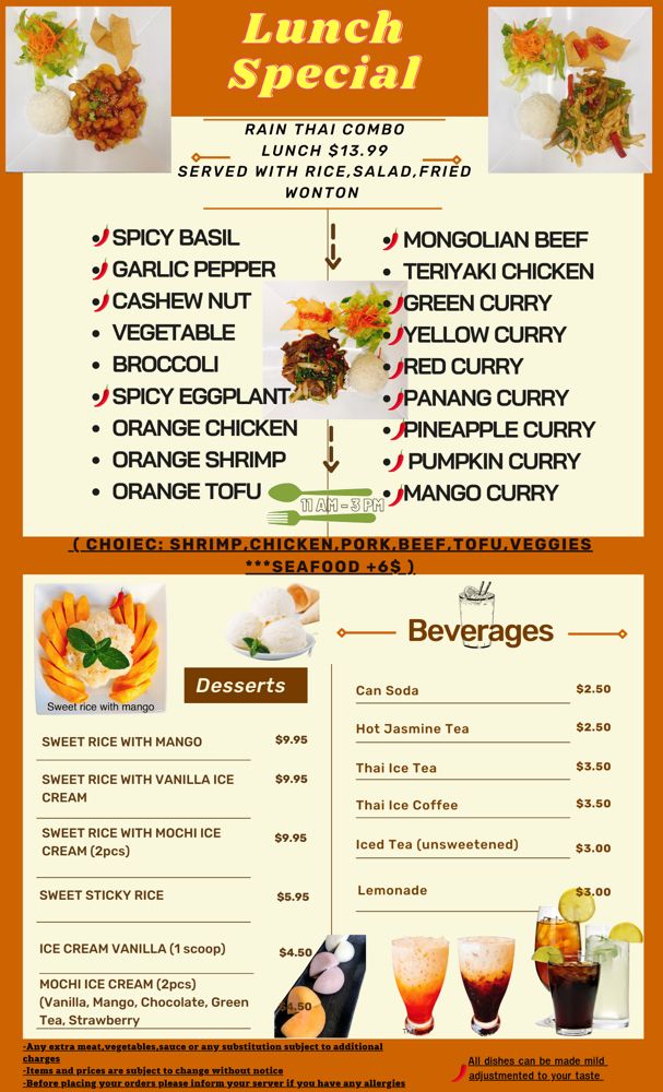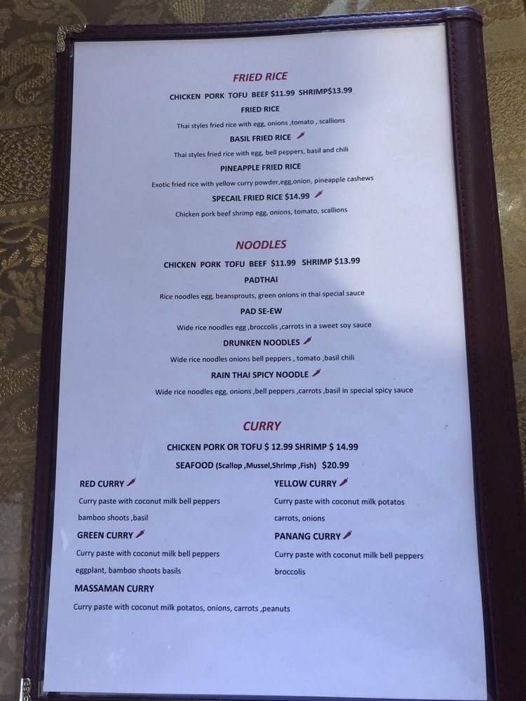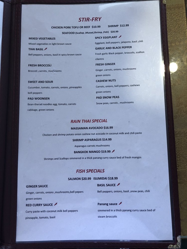 Rain Thai & Sushi Cuisine Menu
